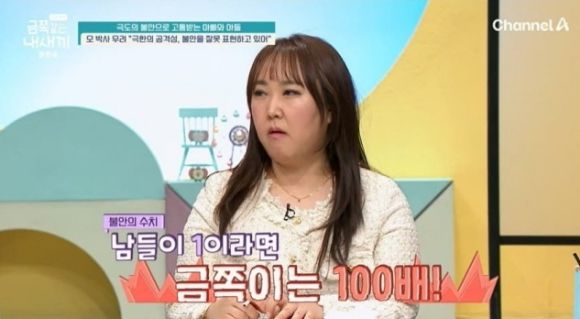 이어 오은영은 "남들이 불안의 수치를 1 정도 느낀다면 금쪽이는 100배로 느끼는 거다. 불안과 화는 다른 감정인데 금쪽이는 불안을 화로 표현하고 있다"고 덧붙였다.