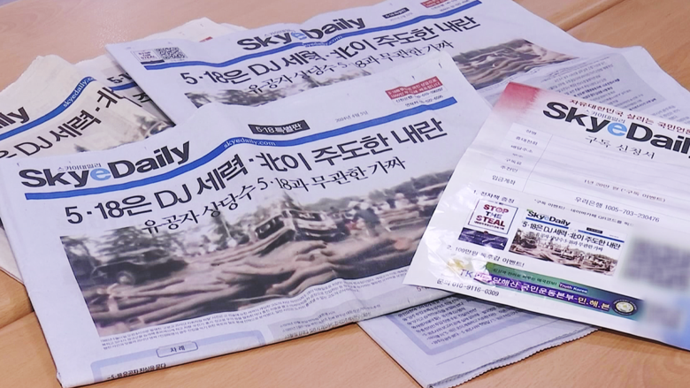 12·3 계엄 사태 당시 '중국인 간첩 99명이 체포됐다'는 오보를 냈던 스카이데일리는 5·18 당시 북한군 개입설을 주장하는 신문을 유포하기도 했습니다. 광주시와 5·18재단이 검증단을 꾸려 전면전에 나섰고, 오늘(16일) 스카이데일리는 신문 1면에 사과문을 올렸습니다.