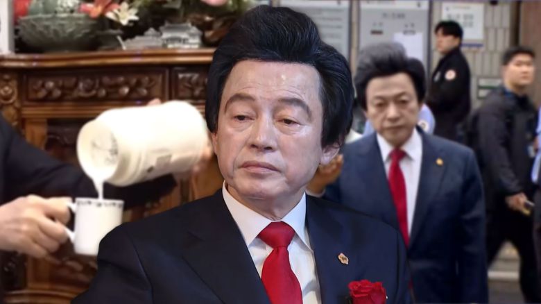 사기, 성추행, 횡령 등의 혐의로 줄줄이 피소된 허경영 국가혁명당 명예대표가 손을 흔들며 들어옵니다.