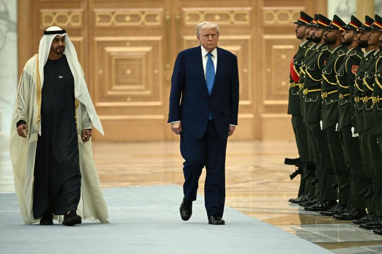 트럼프는 이날 마지막 순방국 아랍에미리트(UAE)에서 무함마드 빈 자이드 알 나하얀 UAE 대통령과 정상회담을 하고 미국산 인공지능(AI) 반도체 칩 연간 50만개 수출, 200억달러 규모 기술 협력 등의 성과를 발표했다. UAE는 향후 10년간 1조4000억달러를 미국에 투자하겠다고 발표했다.