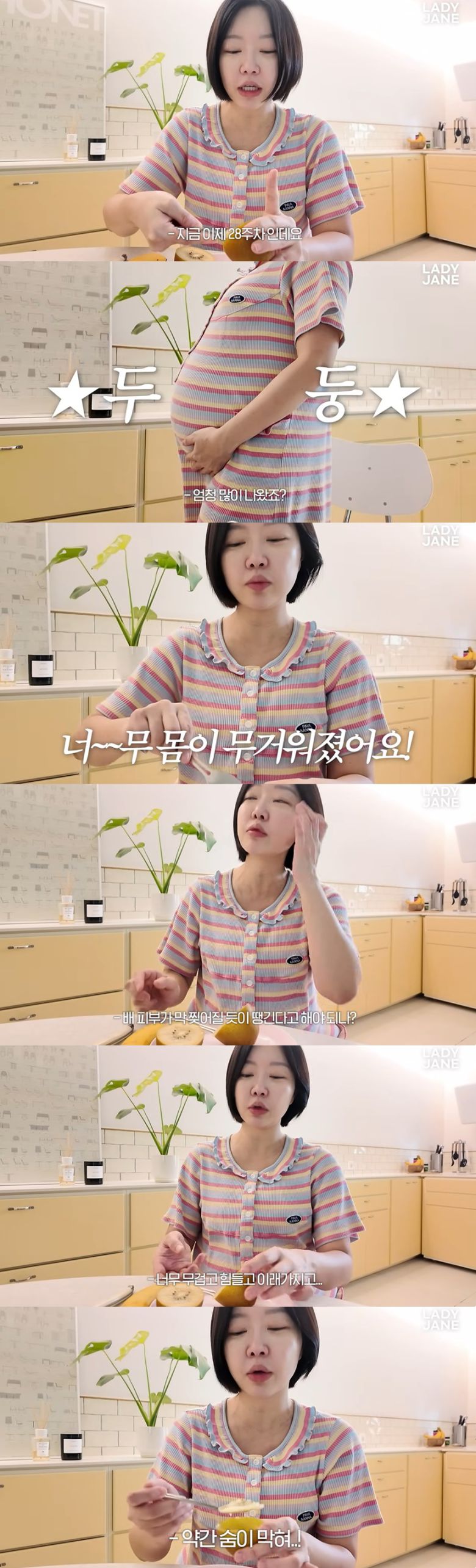 이날 레이디 제인은 "임신 28주차"라며 "28주라고 해도 배가 진짜 많이 나왔다"고 자리에서 일어나 D라인을 직접 보여줬다.