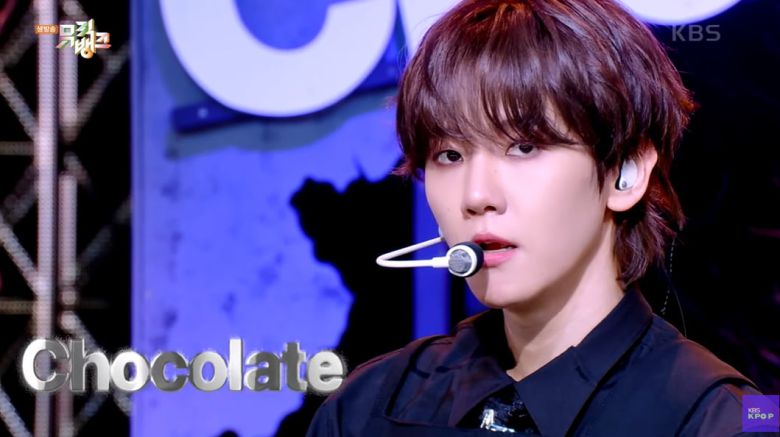 백현은 16일 '뮤직뱅크'에서 이번 신보 선공개곡 'Chocolate'(초콜렛) 무대를 최초로 선보였다. 블랙 의상을 입은 백현은 다크초콜릿처럼 치명적인 매력을 발산하며 퍼포먼스를 펼쳤다. 백현은 'Chocolate' 무대에서 R&B와 발라드를 넘나들며 자신이 곧 장르라는 것을 입증했다.