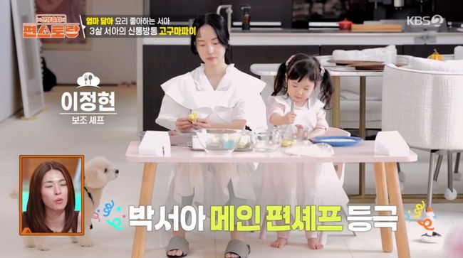 16일 방송된 KBS2TV ‘신상출시 편스토랑’에서는 이정현이 첫째 딸 서아와 함께 고구마 파이를 만들었다.