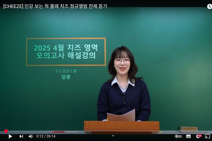 지난달 29일 치즈 공식 유튜브에 올라온 '인강 보는 척 몰래 치즈 정규앨범 전체 듣기' 캡처