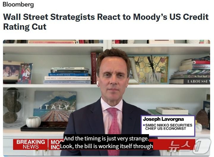 무디스는 미국 국채의 신용 등급을 최고인 'Aaa'에서 'Aa1'으로 한 단계 강등했다. 3대 신용평가사 중 무디스는 유일하게 미국 국채에 대해 1917년 이후 최고 등급을 유지했다 이번에 처음으로 등급을 낮췄다.