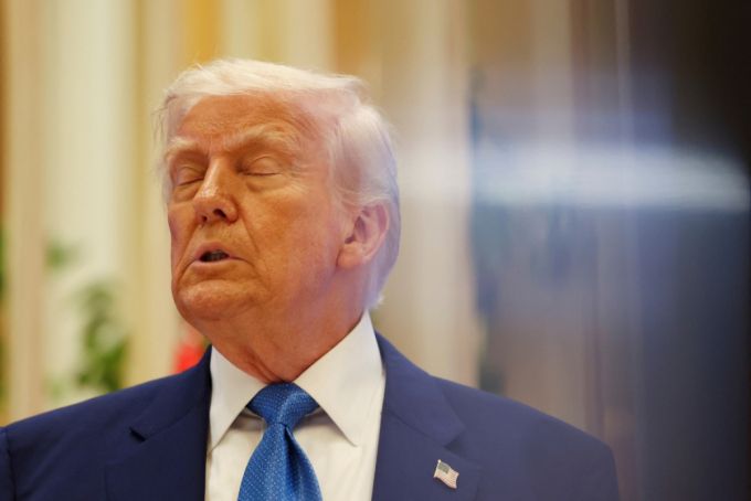 도널드 트럼프 미국 대통령이 16일 아랍에미리트 아부다비에서 중동 순방 마지막 일정으로 카스르 알 와탄에서 열린 비즈니스 포럼에 참석해 연설하고 있다./로이터=뉴스1 |