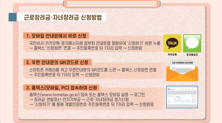 둘째, 휴대폰으로 우편안내문의 QR코드를 스캔하여 신청할 수 있다. 셋째, 인터넷 홈택스에 접속해 신청 가능하다.