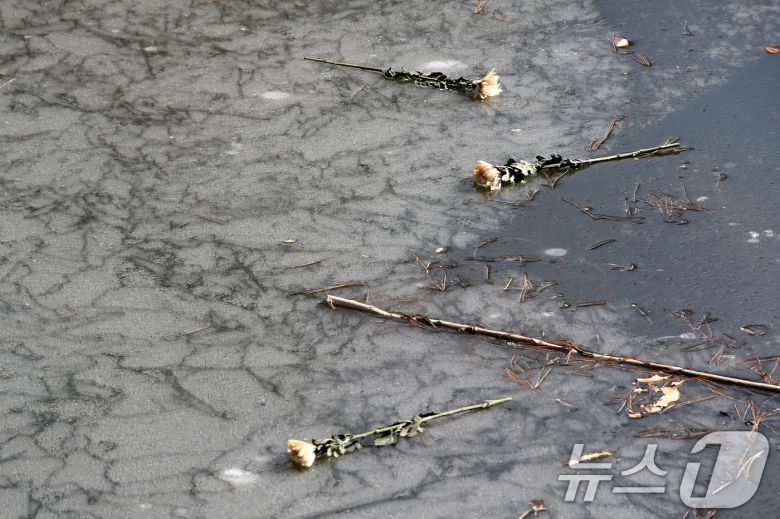 박 군이 친구들을 구하려다 숨진 대구 달성군 다사읍 서재리 한 저수지에 국화가 놓여 있다. 2025.1.16/뉴스1 ⓒ News1 공정식 기자 |