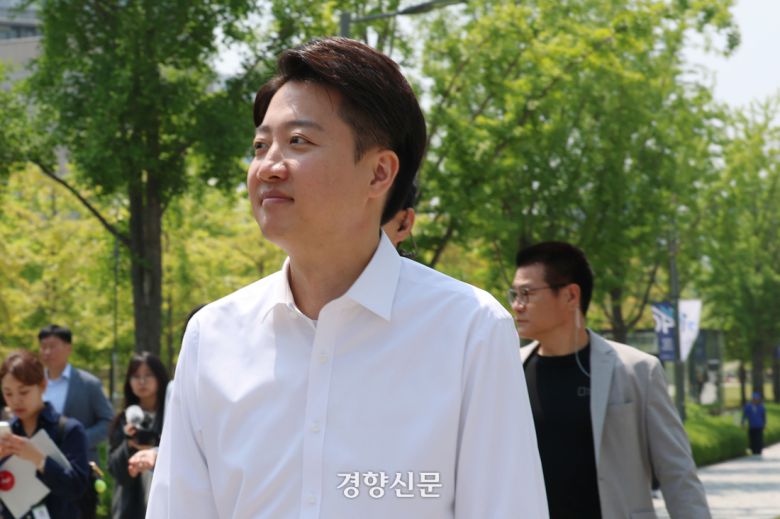 이준석 개혁신당 대선 후보가 제21대 대통령 선거 공식 선거운동 첫날인 지난 12일 서울 서대문구 연세대학교 캠퍼스를 방문하고 있다. 한수빈 기자 |