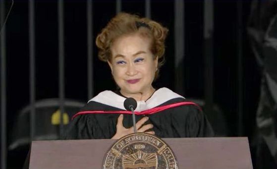 미국 서던캘리포니아대(USC) 졸업식에서 연설한 이미경 CJ그룹 부회장. 사진 USC 스트리밍 중계 화면 캡처