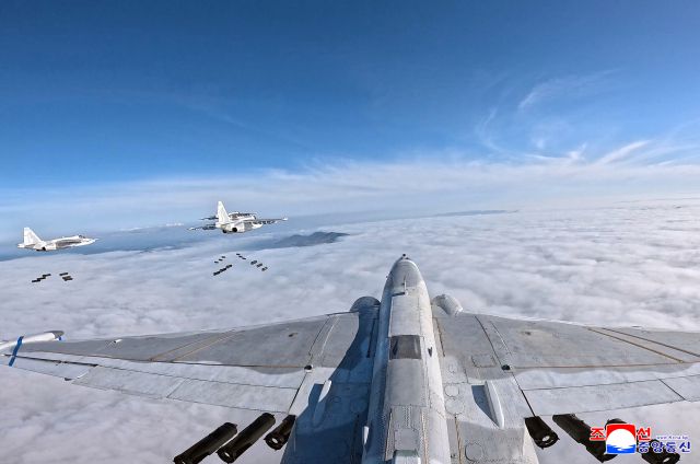 북한 미그-29 전투기에서 신형 공대공 미사일과 활공유도포탄을 발사해 순항미사일과 무인기 표적을 격추하는 훈련이었다.