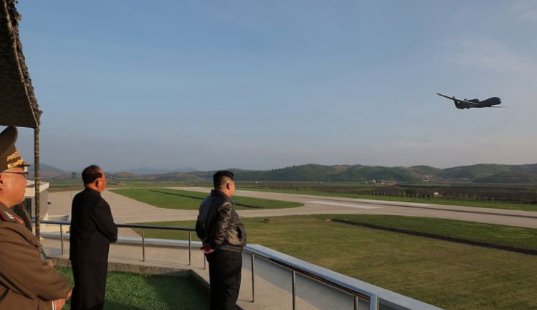 제1공군사단 관하 비행연대 방문해 공군 반항공(방공)전투 및 공습 훈련을 지도한 김정은 북한 국무위원장 / 사진=평양 조선중앙통신