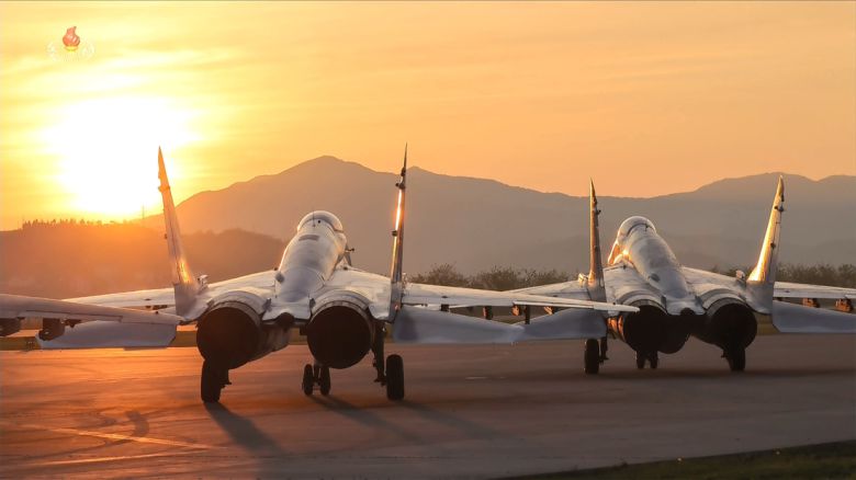 김정은 북한 국무위원장이 지난 15일 제1공군사단 관하 비행연대를 방문해 공군 반항공(방공)전투 및 공습 훈련을 지도했다고 조선중앙TV가 17일 보도했다. 중앙TV가 공개한 사진을 보면 미그(MiG)-29와 수호이(Su)-25 등 북한 공군의 최신 자산이 이날 훈련에 총동원됐다. 연합뉴스