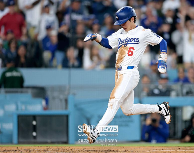 다저스 마운드는 이후 추가 실점을 억제했지만, 다저스는 7회 무사 1루에서도 파헤스가 다시 병살타를 치는 등 극심한 정체를 겪었다. 김혜성은 1-4로 뒤진 8회 선두 타자로 나섰으나 이번에는 1루수 땅볼에 그치며 연속 타석 출루 행진이 끊겼다. 하필 그 다음 타자인 오타니가 추격의 솔로포를 터뜨렸으니 엇박자가 난 셈이었다. 오타니는 이 홈런으로 시즌 16번째 대포를 장식, 메이저리그 홈런 부문 선두로 올라섰다.