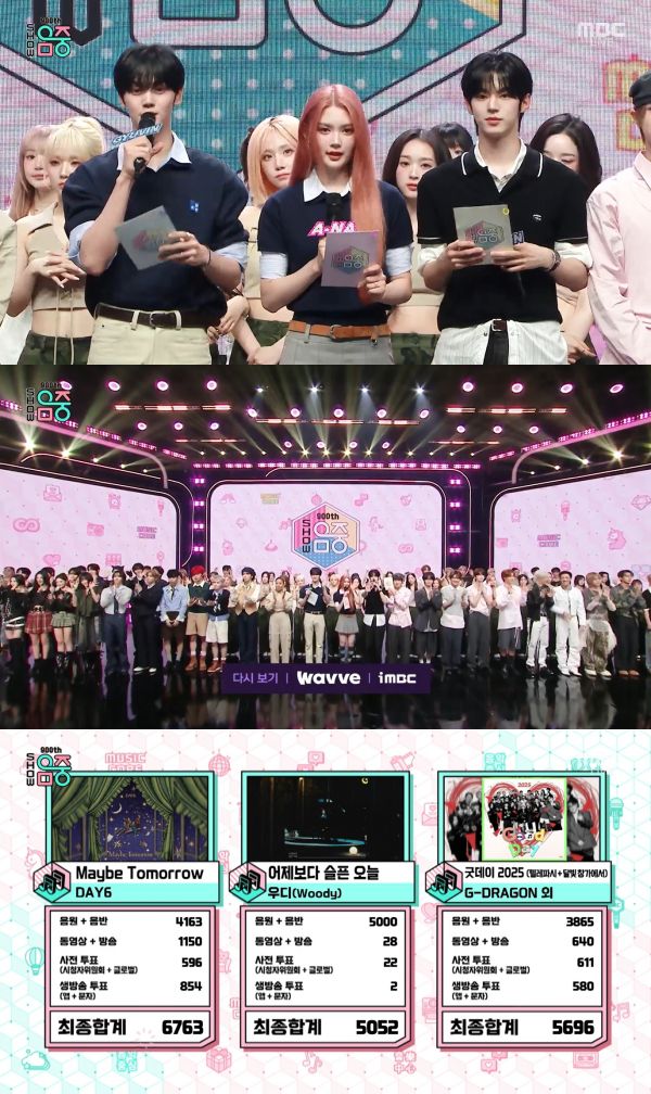 17일 방송된 MBC '쇼! 음악중심' 900회에는 데이식스 '메이비 투모로우(Maybe Tomorrow)', 우디 '어제보다 슬픈 오늘', 지드래곤 외 '굿데이 2025'가 1위 후보에 올랐다.