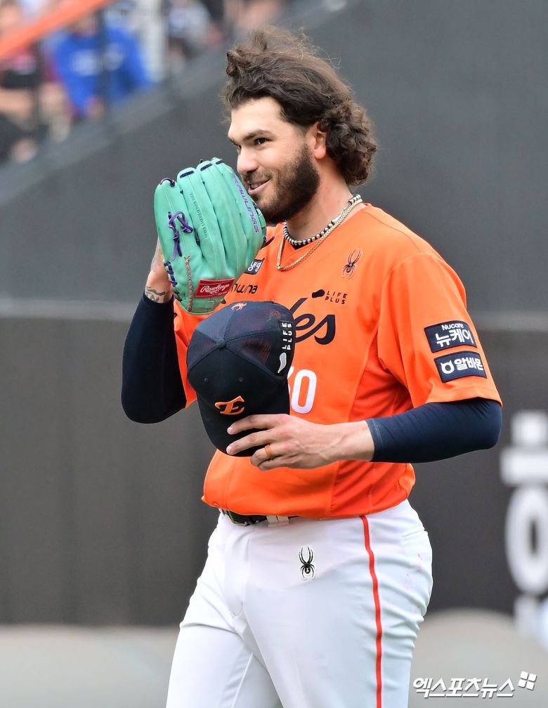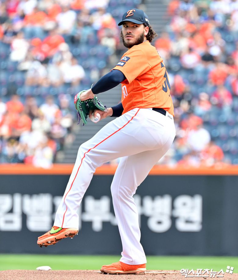 계속되는 삼진 행진. 4회초에는 체인지업으로 박성한에게 헛스윙 삼진을 이끌어냈고, 최정은 2루수 황영묵의 호수비 도움을 받아 땅볼로 돌려세웠다. 이어 한유섬은 볼카운트 2-2에서 156km/h 직구로 헛스윙을 삼진을 잡았다.
