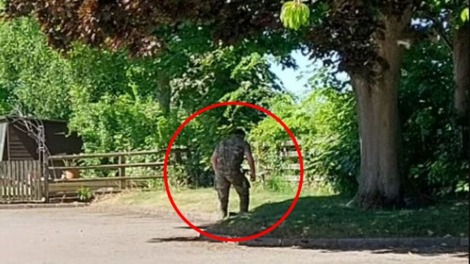 영국 육군의 폭발물 처리 전문가가 초등학교 교사가 두고 간 학교 주차장 옆의 수류탄을 살펴보기 위해 접근하는 모습. /사진=영국 데일리메일 캡처 |