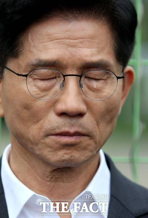 [더팩트ㅣ이효균 기자] 김문수 국민의힘 대통령 후보가 17일 오전 광주 북구 광주교도소 터를 찾아 울먹이고 있다.