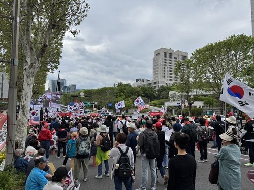 무대에 오른 발언자는 윤 전 대통령이 탈당과 관련해 페이스북에 올린 글을 공유하면서 “윤 전 대통령을 지켜야 한다”고 목소리를 높였다. 일부 참가자들은 “사법부가 정신 똑바로 차리고, 제대로 된 나라를 만들 때까지 삭발할 것”이라며 삭발식을 했다. 이재명 더불어민주당 대선 후보의 재판들이 대선 이후로 연기된 것을 겨냥한 듯 “재판하라”고 외치기도 했다.