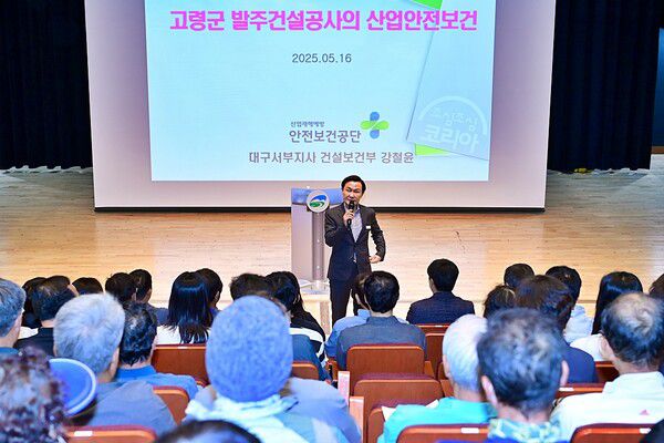 이번 교육은 고령군이 발주한 건설공사 현장에서의 안전사고 예방을 위해 한국산업안전보건공단 대구서부지사의 지원을 받아 담당 공무원과 시공 현장 관계자의 안전관리 역량 강화를 위해 실시했다.