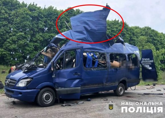 공개된 사진을 보면 드론의 공격을 받은 버스의 지붕이 마치 종이처럼 찢겨져 나갔고, 버스 앞 유리는 흔적도 없이 깨진 상태다. 옆문과 뒷문, 유리창도 모두 파손돼 원래의 형태를 알아보기 힘들 정도다.