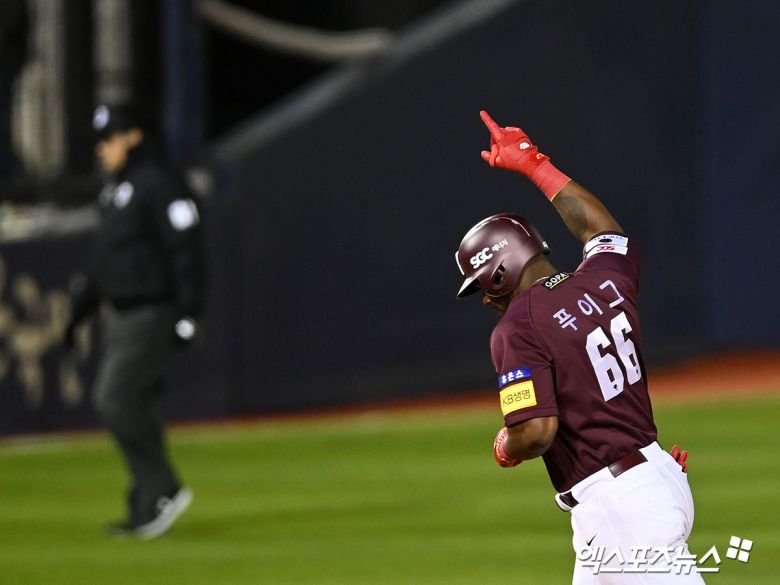 3회초 푸이그가 시원한 홈런포를 쏘아 올렸다. 이닝 선두타자로 나서 최성영의 포크볼을 받아쳐 좌측 파울폴을 때리는 비거리 110m 솔로포(시즌 6호)를 쳐 2-1로 팀에 리드를 안겨줬다.