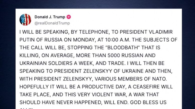 트럼프 대통령은 푸틴 대통령과의 통화가 생산적이기 바란다며 휴전은 이뤄질 것이고, 폭력적인 전쟁, 일어나지 말았어야 할 전쟁은 끝날 것이라고 덧붙였습니다.