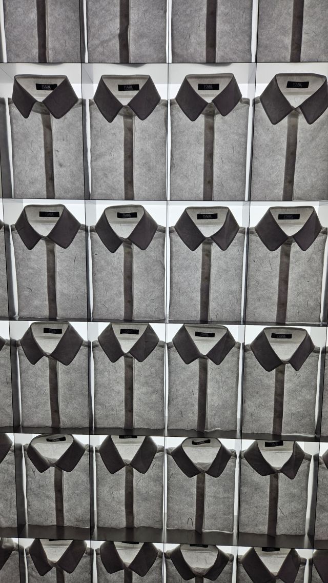팝업 중앙에는 와이셔츠 깃으로 만든 ‘칼 셔츠칼라 트리’와 한지로 만든 와이셔츠를 볼 수 있다. 이 전시품들은 공식석상에서 흰 와이셔츠에 검은 정장을 즐겨 입었던 칼 라거펠트를 상징한다. 한국에서 열리는 팝업인 점을 고려해 전시품의 와이셔츠를 한지로 특별 제작됐다.