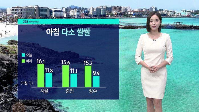 현재 기온 서울을 비롯한 대부분 지역이 10도 안팎으로 어제 아침보다 4도에서 6도가량 낮아 다소 쌀쌀하게 출발하고 있습니다.