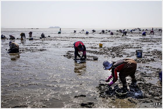 탱글탱글 살 오른 제철 바지락을 캔다.