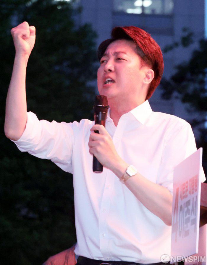 [서울=뉴스핌] 이길동 기자 =이준석 개혁신당 대선후보가 12일 오후 서울 중구 청계광장에서 열린 출정식에서 시민들에게 지지를 호소하고 있다. 2025.05.12 gdlee@newspim.com