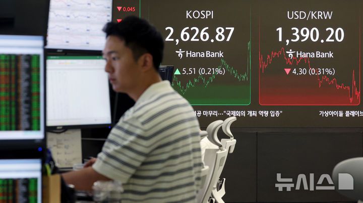 [서울=뉴시스] 김진아 기자 = 16일 서울 중구 하나은행 딜링룸에서 딜러들이 업무를 보고 있다. 코스피는 전 거래일(2621.36)보다 5.51포인트(0.21%) 상승한 2626.87에, 코스닥 지수는 전 거래일(733.23)보다 8.16포인트(1.11%) 내린 725.07에 거래를 마무리했다. 서울 외환시장에서 원·달러 환율은 전 거래일 주간거래 종가(1394.5원)보다 4.9원 내린 1389.6원에 주간 거래를 마쳤다. 2025.05.16. bluesoda@newsis.com |