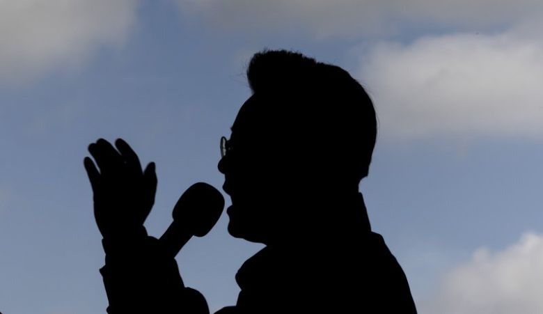 이재명 더불어민주당 대선후보가 지난 17일 광주 서구 김대중컨벤션센터 광장에서 열린 집중유세에서 지지를 호소하고 있다. 공동취재