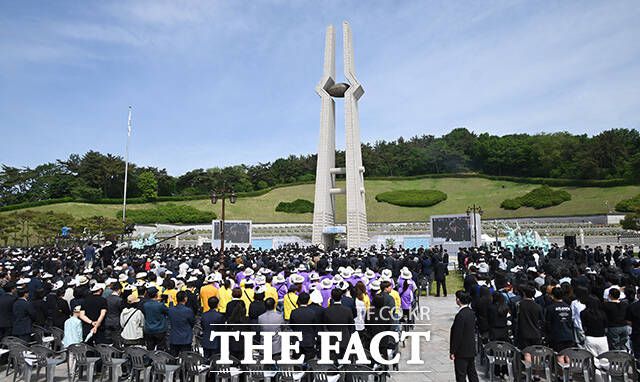 [더팩트ㅣ남윤호 기자] '함께, 오월을 쓰다'를 주제로 열린 제45주년 5·18민주화운동 기념식에 이주호 대통령 권한대행 부총리 겸 교육부 장관, 이재명 더불어민주당 대선 후보, 이준석 개혁신당 대선 후보, 5·18민주유공자 등 2500여명이 참석한 가운데 광주 국립5·18민주묘지에서 엄수됐다.