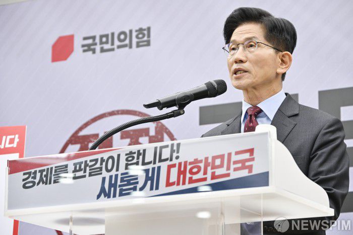 [서울=뉴스핌] 정일구 기자 = 김문수 국민의힘 대선후보가 18일 오전 서울 여의도 국민의힘 중앙당사에서 '경제를 판갈이 합니다! 새롭게 대한민국' 경제 공약 발표를 하고 있다. 2025.05.18 mironj19@newspim.com