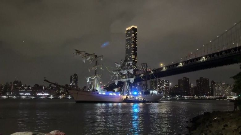현지 시간 17일 오후 멕시코 해군 소속 '쿠아우테목'함이 미국 뉴욕시 이스트강을 지나던 중 브루클린 다리와 부딪쳤습니다.