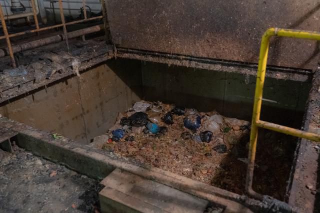경기 하남시 환경기초시설 음식물 반입장의 쓰레기 피트(pit). 피트 내부에 음식물 쓰레기가 늪처럼 쌓여 있다. 피트로 추락한 노동자는 음식물이나 유독가스에 의해 질식될 위험이 있다. 한국일보 자료사진