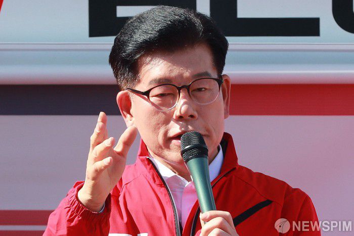 [성남=뉴스핌] 이형석 기자 = 장영하 국민의힘 성남시수정구 국회의원 후보가 31일 오전 경기 성남시 분당구 오리역 광장에서 시민들을 향해 지지를 호소하고 있다. 2024.03.31 leehs@newspim.com |