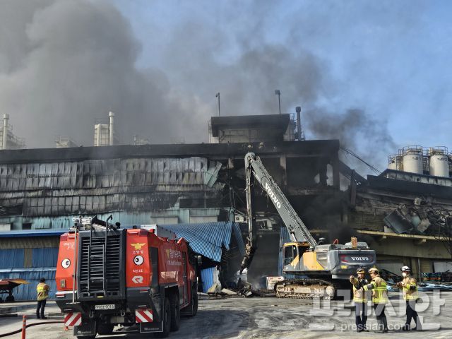이날 오전 공장 앞에선 소방대원들이 먹다 남은 빵과 생수병, 우유팩, 음료병이 널부러져 있었다. 쉴 틈 없이 이어지는 밤샘 진화작업에 소방관들이 끼니조차 제대로 챙기지 못했음을 보여줬다.