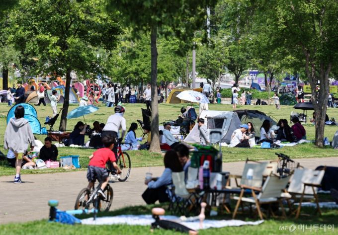 (서울=뉴스1) 김도우 기자 = 18일 서울 서초구 반포한강공원을 찾은 시민들이 휴일을 만끽하고 있다. 2025.5.18/뉴스1 Copyright (C) 뉴스1. All rights reserved. 무단 전재 및 재배포, AI학습 이용 금지. /사진=(서울=뉴스1) 김도우 기자 |