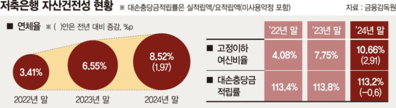 금감원은 지난해 6월부터 부동산 PF 사업성 평가기준을 바꾸고, 부실 사업장의 신속한 정리를 유도해왔지만 일부 저축은행의 경우 부실 정리가 지연되고 있다. 여기에 경기 침체 영향으로 자영업자 등 개인사업자 대출과 가계대출이 연체되면서 연체율이 오름세를 보이고 있다.