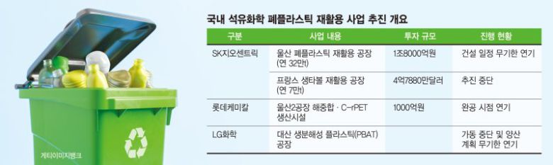 조용원 산업연구원 연구위원은 "2030년까지 탄소중립 달성이 핵심 과제로 떠오르며 폐플라스틱 활용에 대한 관심이 커지고 있지만, 이를 원료로 사용하려면 추가 설비가 필요하다"며 "기업들의 투자여력이 부족한 데다 설비투자 시점도 당초 예상보다 1년가량 늦춰져 사업 추진에 어려움을 겪고 있다"고 말했다.