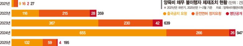 명단 공개, 출국금지, 운전면허 정지 같은 행정제재는 법원의 감치명령 없이도 가능한 조치다. 여성가족부는 지난 2024년 한 해 동안 출국금지 요청 655건, 운전면허 정지 요청 266건, 명단 공개 26건 등 총 947건의 제재를 시행했다고 밝혔다.