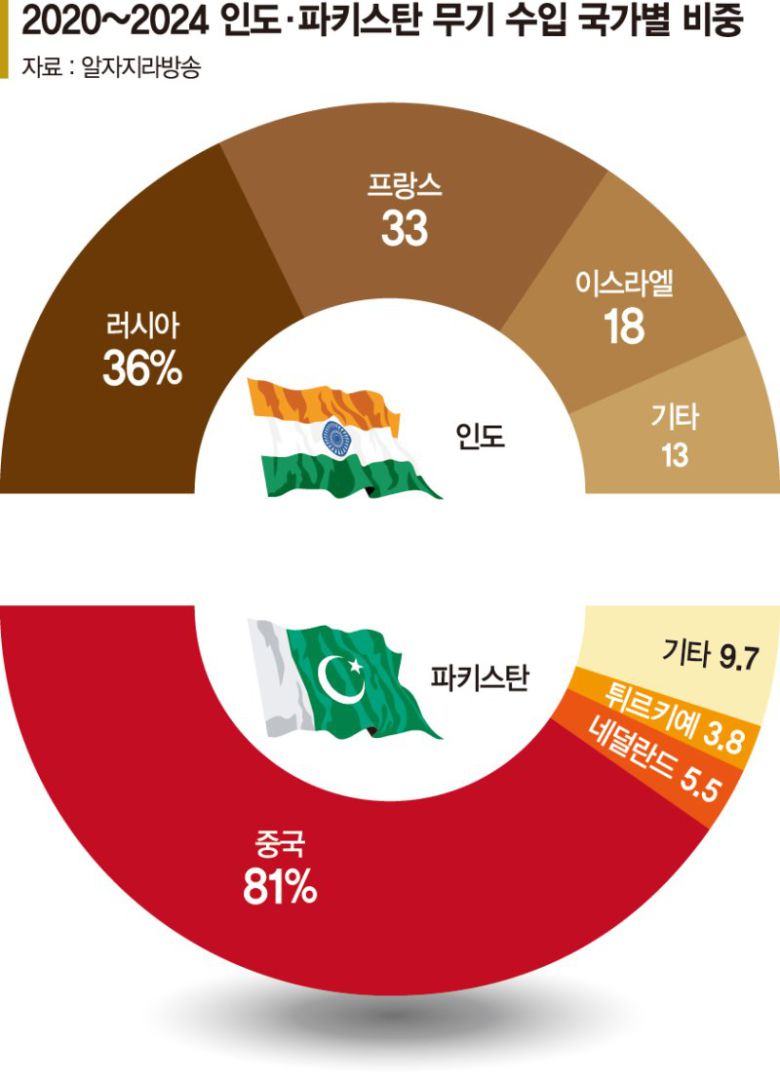 스웨덴 싱크탱크 스톡홀름국제평화연구소(SIPRI)에 따르면 지난해 파키스탄의 군사비 지출액은 97억1000만달러(약 13조5988억원) 수준으로 세계 31위에 그쳤다. 이는 같은 기간 군비 지출 5위를 기록한 인도에 비하면 약 9분의 1 수준이다. 파키스탄은 인도(180개)와 비슷한 170개의 핵탄두를 가졌지만 재래식 전력으로는 비교하기 어려울 정도로 열세다. 이러다 보니 파키스탄은 앞서 인도와 국지적인 무력 충돌에서 인도의 공세를 뿌리치는 수준의 소극적인 방어에 머물렀다.