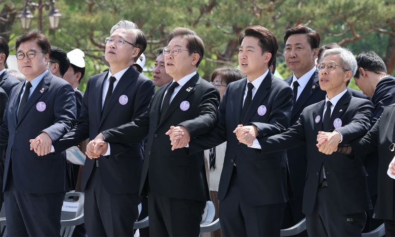 이날 기념식에는 더불어민주당 이재명 대선 후보와 개혁신당 이준석 후보, 민주노동당 권영국 후보도 참석했다. 대통령 자리를 두고 경쟁하는 이들이지만, 이 순간만큼은 손을 맞잡고 오월 정신을 마음에 새겼다. 다만 국민의힘 김문수 후보는 기념식에 불참하고, 전날 5·18 민주묘지를 찾아 참배했다.