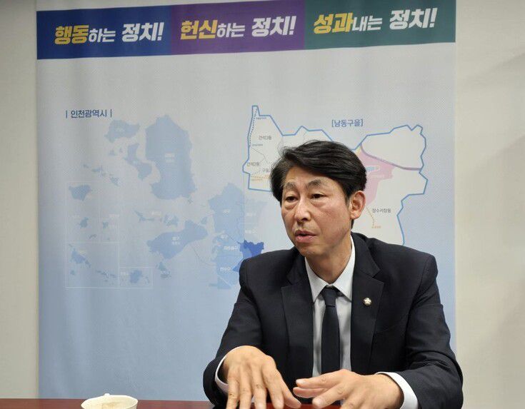 이훈기 더불어민주당 방송·콘텐츠특별위원회 위원장이 지난 14일 한겨레와 만나 특위의 활동 방향을 설명하고 있다. 최성진 기자 |