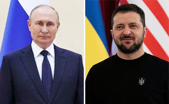 블라디미르 푸틴 러시아 대통령(왼쪽), 볼로디미르 젤렌스키 우크라이나 대통령. 연합뉴스