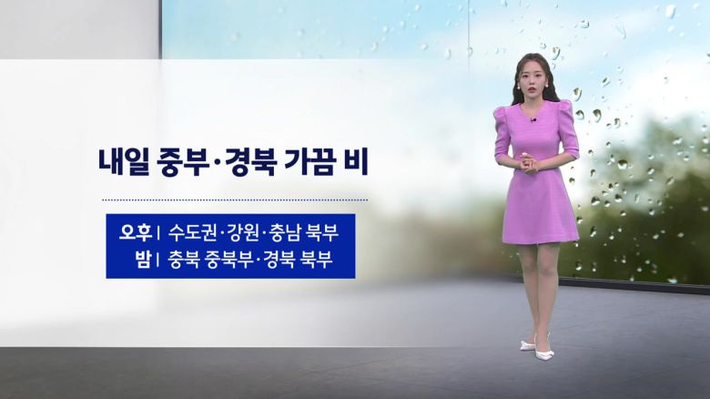 오후부터 수도권과 강원, 충남 북부에 비가 내리겠고 밤에는 충북 중북부와 경북 북부에도 비가 가끔 지나겠습니다.