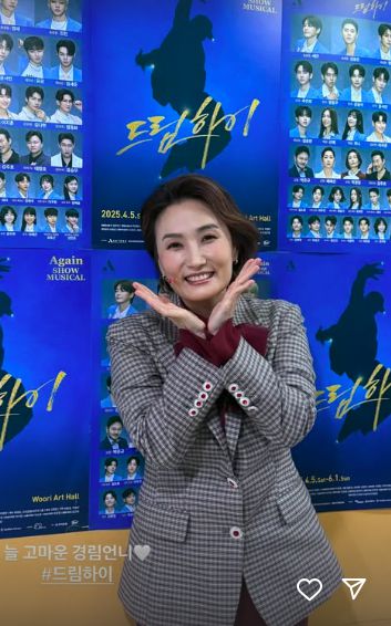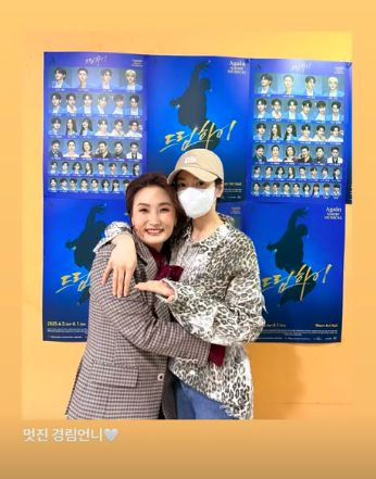 18일 송혜교는 “늘 고마운 경림언니. 멋진 경리언니”라는 글과 함께 두 장의 사진을 공유했다. 사진에는 박경림이 뮤지컬 ‘드림하이’ 포스터를 배경으로 꽃받침 포즈를 취하고 있는 모습이 담겼다.