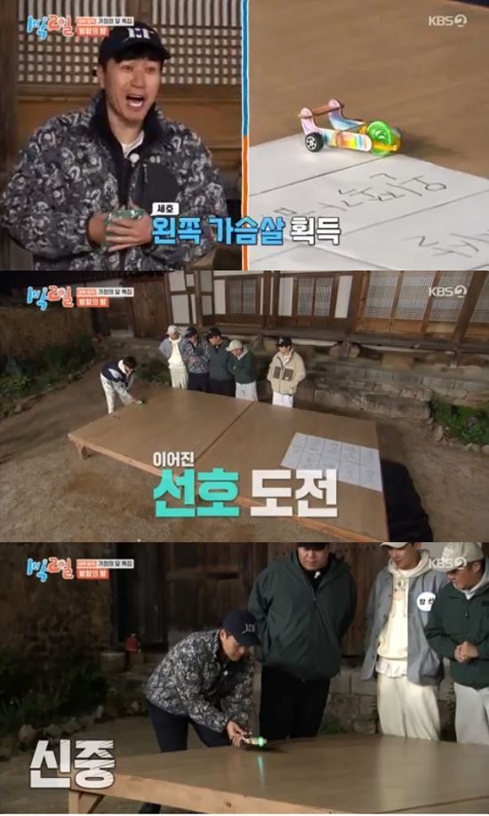 필선 팀 할머니들이 먼저 승리하면서 옥금 팀의 문세윤, 이준, 딘딘이 야외취침을 하게 됐다.
